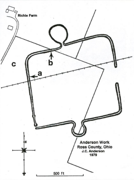 Anderson Earthworks is located at the confluence of the North Fork Paint Creek and Biers Run. It is located on Private Property.